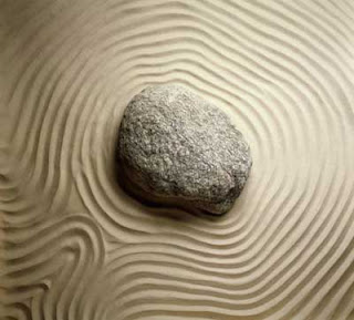 | Peter Samuels/Getty Images As ondulações ao redor dessa pedra servem para simbolizar as ondas do mar desse jardim de pedra |